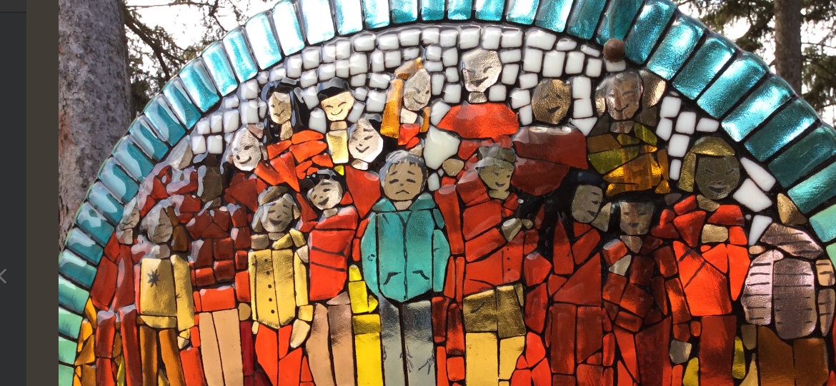 After a six-month long collaboration, we celebrated the students’ work at an Artist Reception held at the Markham Museum. Outside, on their 25-acre property, the 26 fused glass and metal artwork stood like living statues waiting for visitors to engage them in conversation. Each sculpture, along with its title and the students’ names, also had a unique telephone number. Visitors could dial in to hear the ELLs speak about their journey to Canada in both English and their first language.
